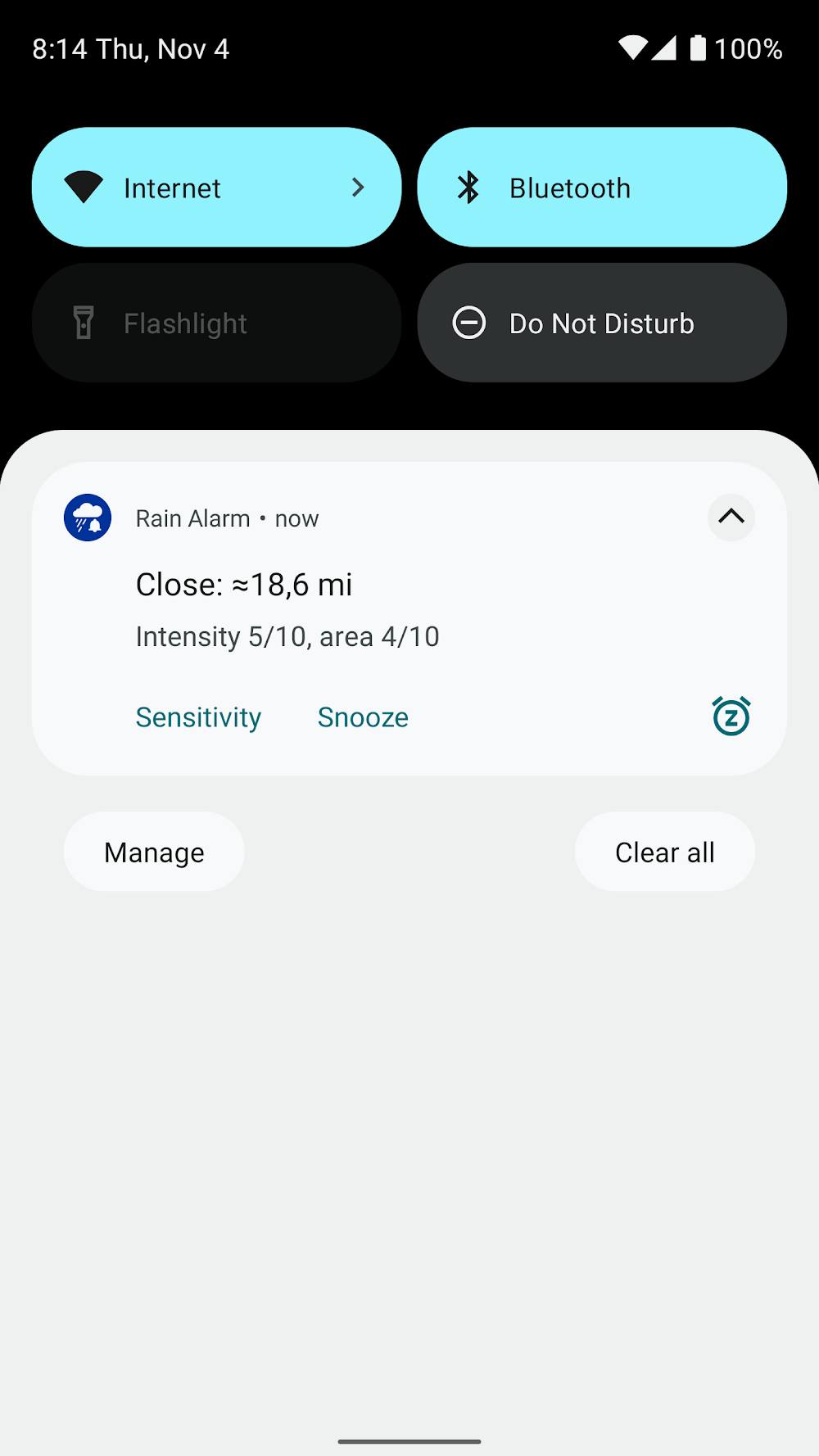 Rain Alarm — это полезное приложение для прогнозирования погоды, которое предупреждает вас о приближении дождя. Приложение оповестит вас о дожде в любое время и в любом месте с помощью вибрации или звука, чтобы вы знали и могли вовремя принять меры, что делает его лучшим помощником для активного отдыха. Приложение для предупреждения о дожде в реальном времени с высокой точностью помогает вам легко планировать свои дела, а также может обновлять информацию для родственников или друзей по всему миру. Данные о погоде собираются из национальной метеорологической службы и государственных источников, поэтому вам не нужно беспокоиться о точности этого приложения.