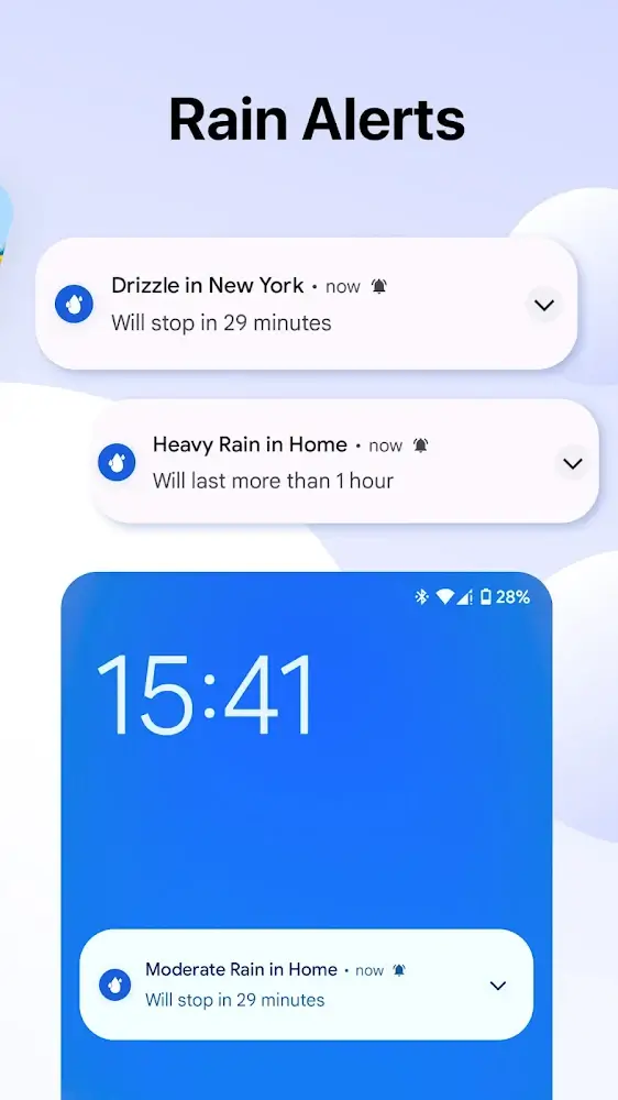 - Никогда не попадайтесь врасплох: На основе приложения вы можете удобно брать с собой дождевик или зонт, когда выходите.