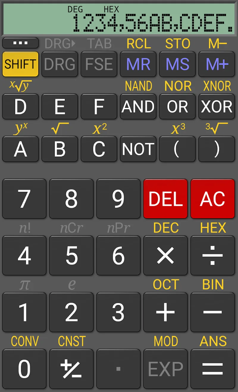 - Вычисления в нескольких системах счисления: RealCalc Plus поддерживает несколько систем счисления для вычислений, таких как двоичная, восьмеричная и шестнадцатеричная. Приложение поддерживает все многовариантные вычислительные функции. Необходимые инструменты для различных вычислительных потребностей поддерживаются. Вы можете легко переключаться между разными системами счисления.