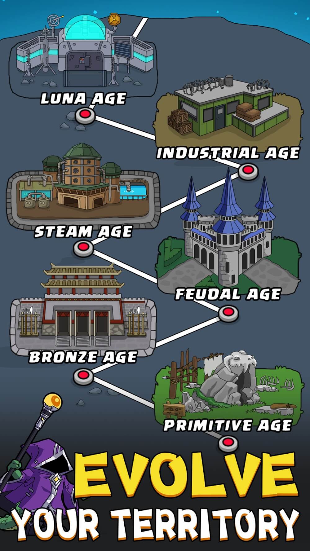 Приготовьтесь вернуться в прошлое и исследовать, как развивалось ваше племя. В Savage Clash вы можете путешествовать во времени и изучать различные цивилизации, от Каменного века до Марсианской эры. Это путешествие по истории не похоже ни на одно другое, ведь оно одновременно увлекательное и захватывающее.