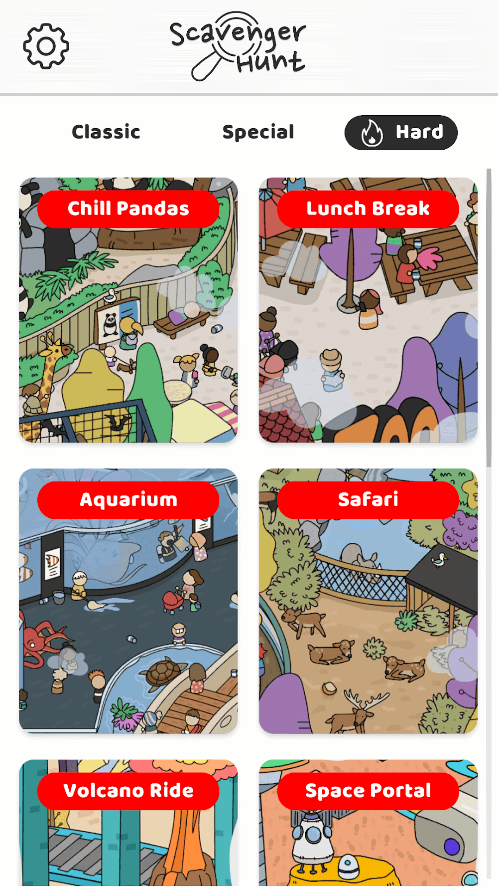 Scavenger Hunt отличается от других игр про поиск предметов в своём жанре использованием интерактивных карт. Вам предстоит искать спрятанные вещи не на статичном изображении, а в динамичной, хаотичной обстановке с множеством отвлекающих элементов. В игре представлен широкий спектр локаций. По мере прохождения игры вы будете открывать доступ к новым областям и дополнительным испытаниям. Предсказуемые ситуации, такие как играющие в парке маленькие дети или пожилые люди, переходящие дорогу на парковке, заставят вас быть начеку.
