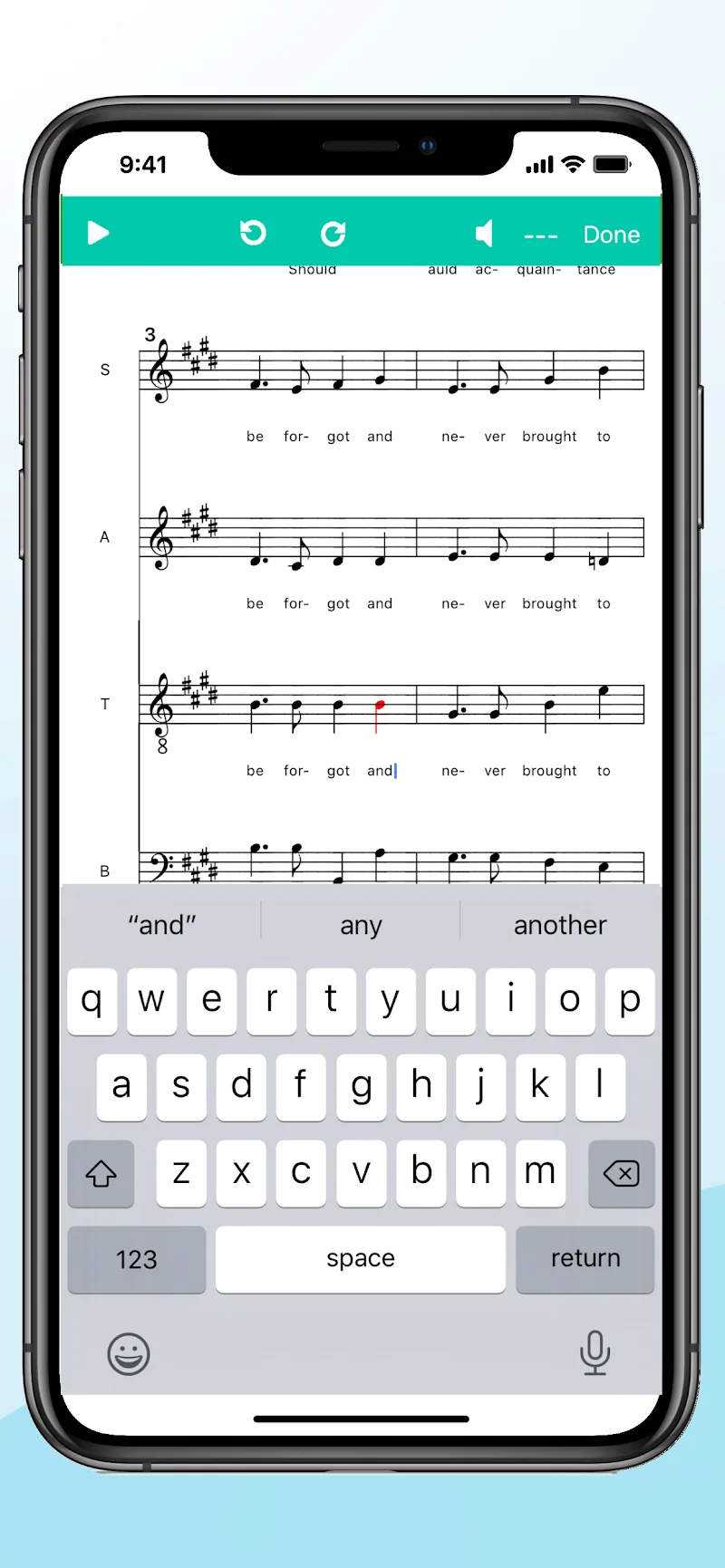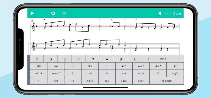- Эффективный ввод нот: Приложение использует простую сенсорную клавиатуру для ввода нот и простых аккордов на вашем мобильном устройстве. Эти оценки сохраняются приложением, чтобы вы могли просматривать свои усилия.