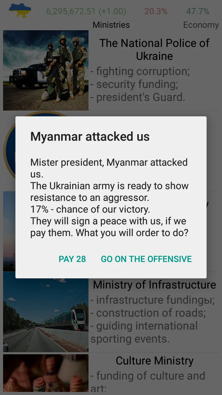 Только что вышла новая Премиум-версия игры Simulator of Ukraine Premium, позволяющая игрокам участвовать в игре в роли Верховного Президента Украины. Игрокам предстоит принимать решения жизни и смерти, которые напрямую влияют на развитие или разрушение всей страны Украины.