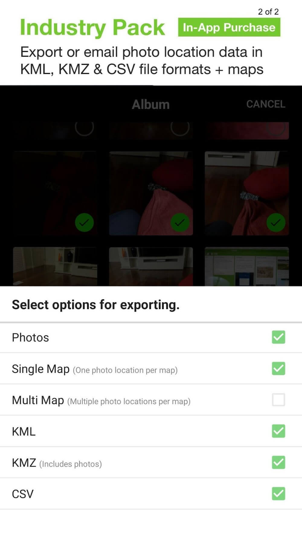 Отправка вложения, содержащего несколько фотографий и связанных метаданных в формате KML, KMZ или CSV, является одной из основных возможностей этого приложения. Вам следует включать карты местоположения в любые изображения, отправляемые по электронной почте или экспортируемые, и выбирать наиболее удобные для вас форматы для сохранения ваших изображений, карт и данных. Доступно несколько вариантов, а фотографии можно экспортировать или отправлять по электронной почте по отдельности или в составе сжатого архивного файла.