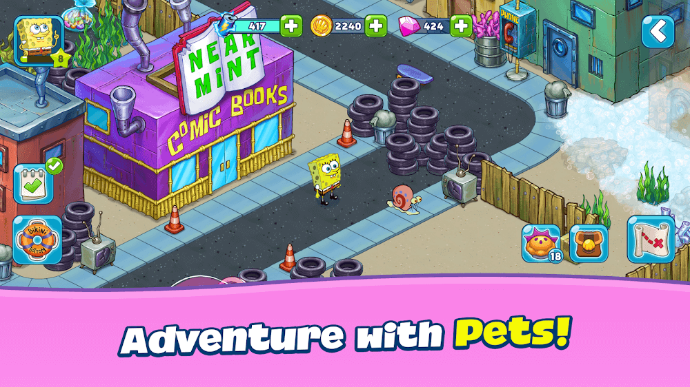 SpongeBob Adventures: In A Jam — это игровой процесс, сочетающий строительство, исследование и фермерство, где вы сможете найти своих друзей после неудачного инцидента, вызванного медузами. Большая территория полностью заблокирована и может быть открыта только при затрате определённого количества энергии, а вы сможете разблокировать зоны, где продаются различные товары. В частности, выполняя квесты в игре, вы можете напрямую получать ряд ресурсов, которые помогут вам развиваться и вновь открывать для себя город, который вы когда-то очень хорошо знали.