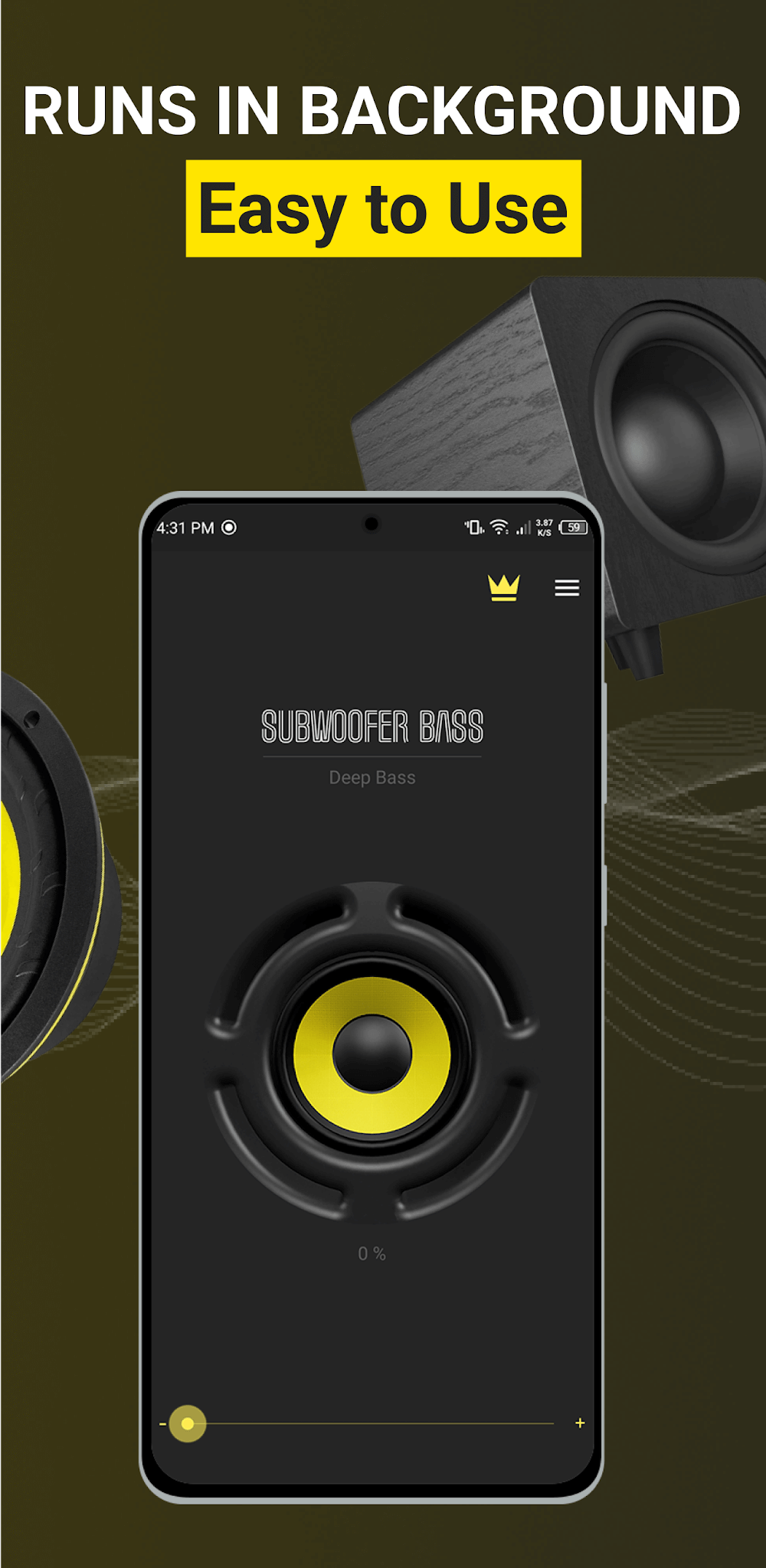 Subwoofer Bass — это бесплатное приложение, которое позволяет настраивать качество звука. На своих устройствах пользователи могут регулировать басы. Кроме того, у вас будет доступ к прекрасной и привлекательной музыкальной комнате. Более того, приложение позволяет независимо настраивать уровни низких частот. В результате этой настройки ваш басовый звук улучшится и станет более отчётливым. Пользователи также могут наслаждаться музыкой и фильмами более высокого качества.