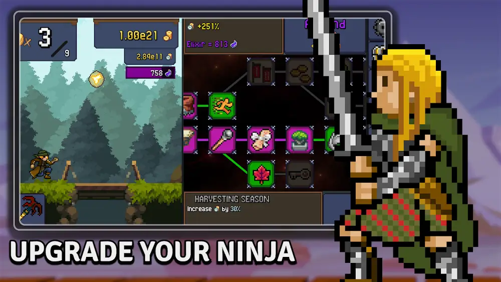 Tap Ninja — это опыт, сочетающий элементы idle-игры и тактический геймплей, связанный с путешествием ниндзя. Каждому предстоит помогать главному герою в уничтожении различных врагов с течением времени. В то же время разнообразие новых технологий часто помогает деревне быстро развиваться.