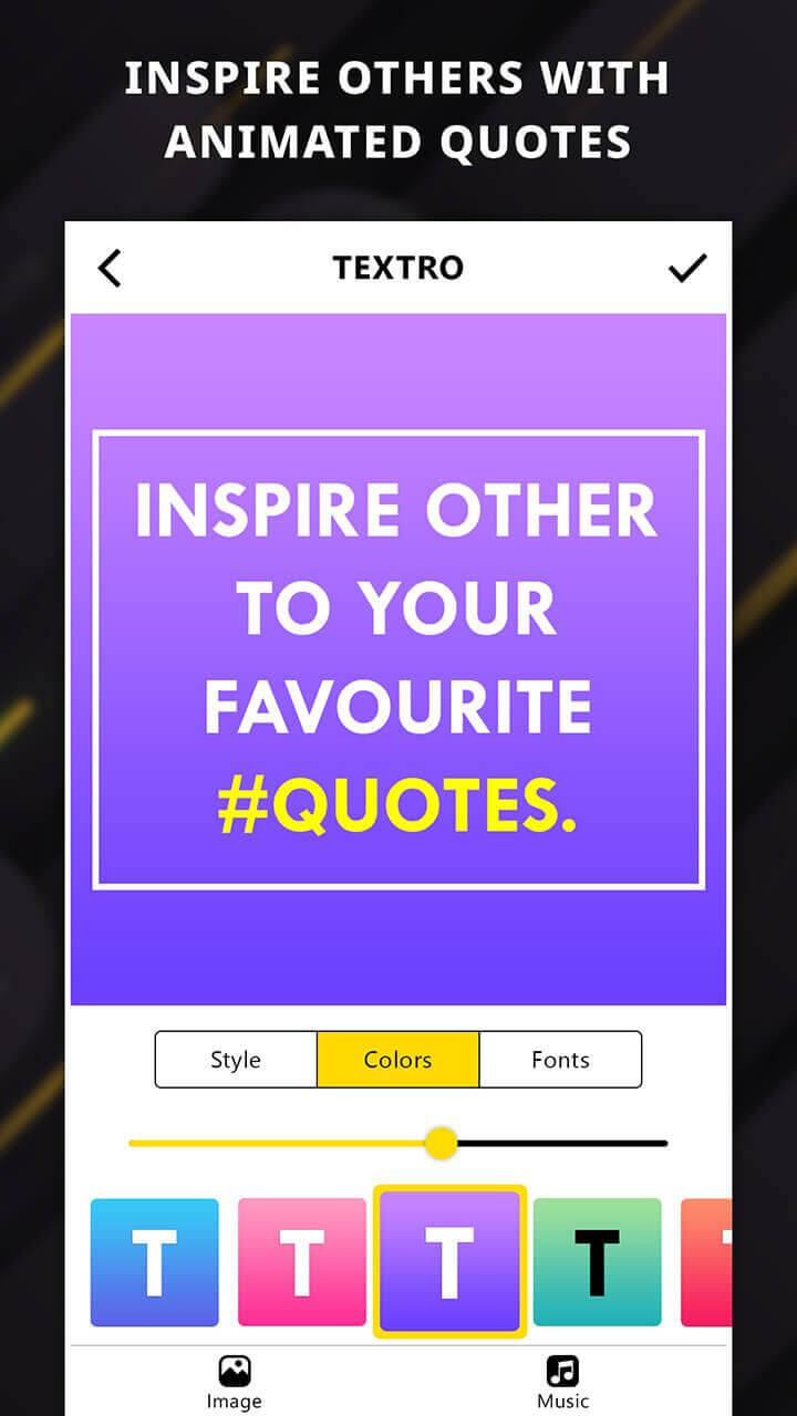 Добавление текста в ваше видео становится проще, потому что Textro удовлетворит эту потребность. Приложение позволяет добавлять новый текст путем ввода или добавления существующего текста. Известные высказывания или даже цитаты также используются в этом приложении, и оно предлагает вам практически использовать эту функцию для удовлетворения ваших потребностей в редактировании текста.
