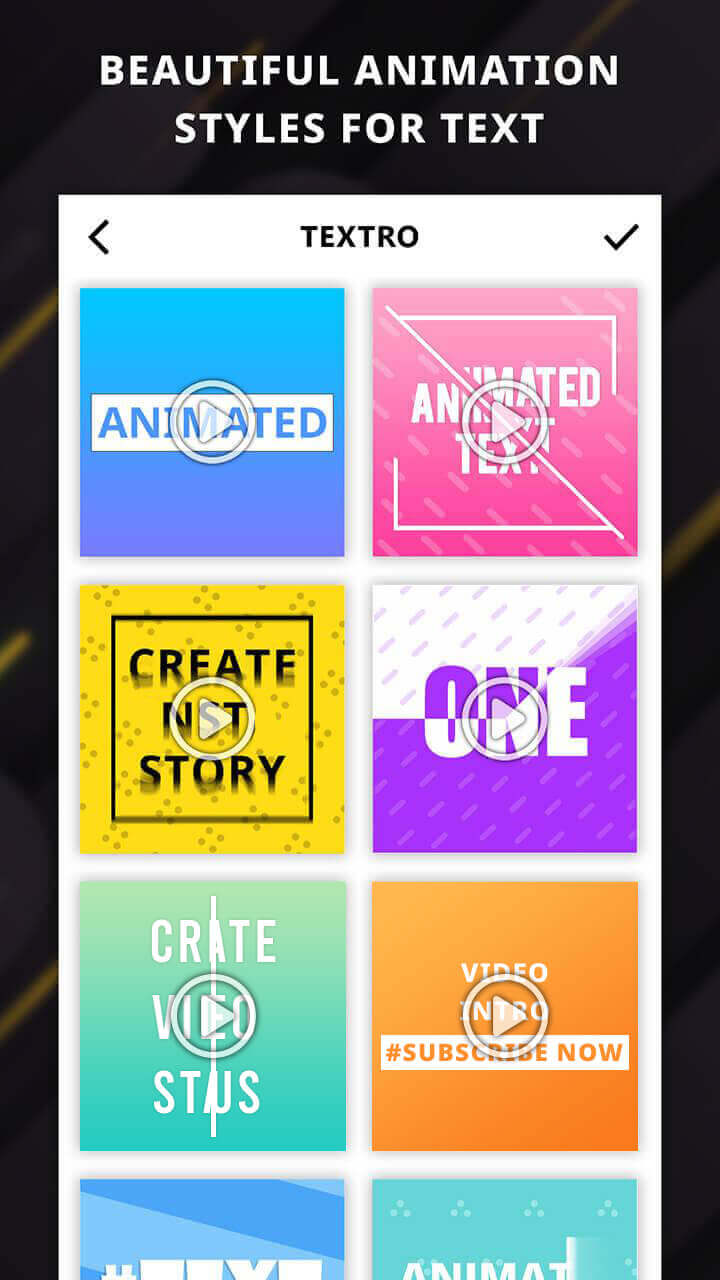 Textro Mod APK предоставляет вам новые функции для добавления текста в ваши видео. Это новое элегантное приложение, и пользователи могут выбрать любой текст, чтобы создать впечатление от своих видео. Кроме того, приложение также позволяет создавать современные видео и выбирать новые эффекты "прыгающего" текста. Приложение также стремится предоставить вам больше новых впечатлений и возможность создавать фирменные видео.