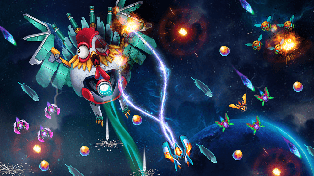 Простой геймплей вовлечёт вас в масштабную кампанию с бесконечным разнообразием контента. Ваши миссии — отражать атаки куриных захватчиков из космоса, и вы можете зарабатывать новое прогрессирование в своих космических завоеваниях. Всё это складывается в невероятное количество удовольствия. Более того, игра будет постоянно повышать сложность в зависимости от количества поджаренных вами кур, делая игру ещё увлекательнее и забавнее.