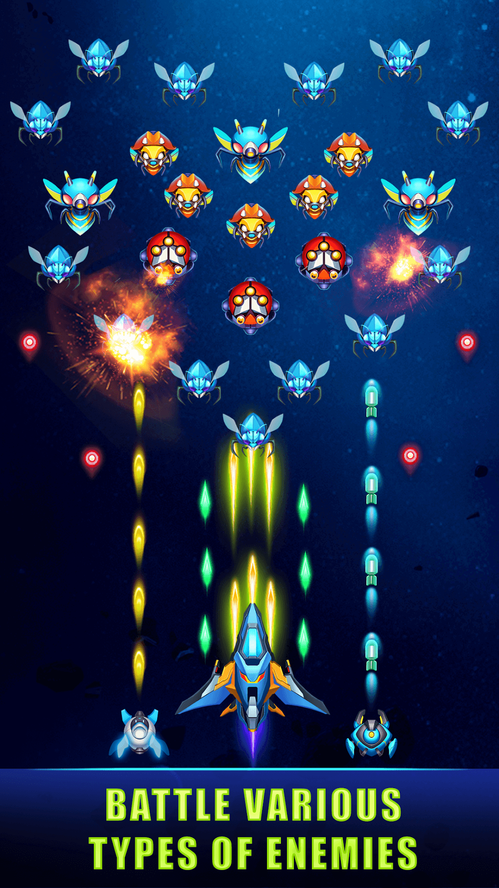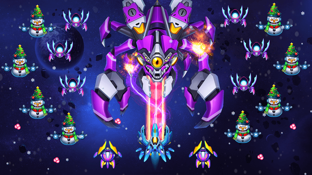 Universe Invader Mod APK предлагает забавные концепции шутера, и вам предстоит сражаться с опасными куриными захватчиками, планирующими уничтожить Землю. Таким образом, ваша битва вечна, и вы можете сражаться с бесчисленными разновидностями инопланетных кур и получать удовольствие от их испытаний.