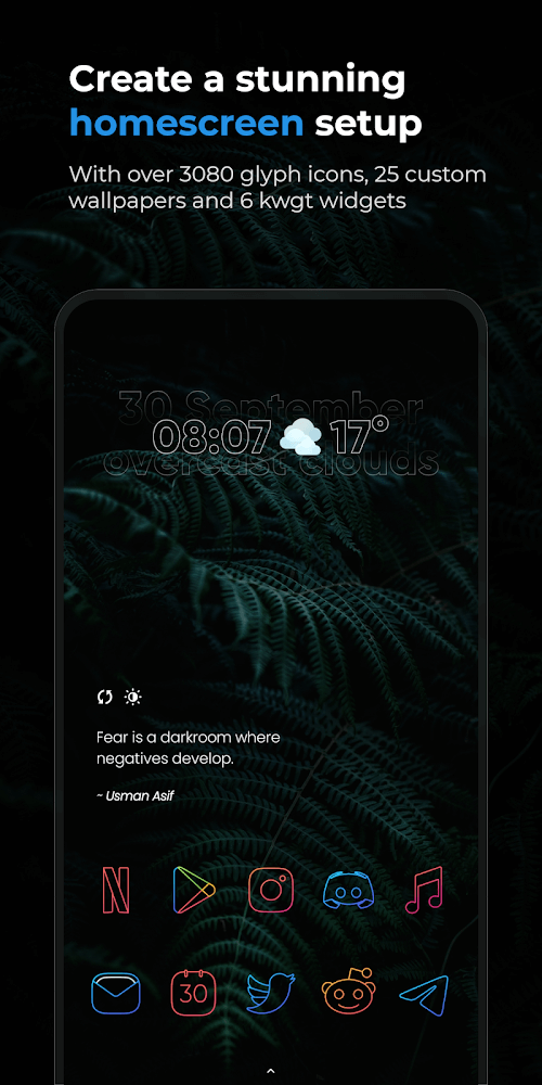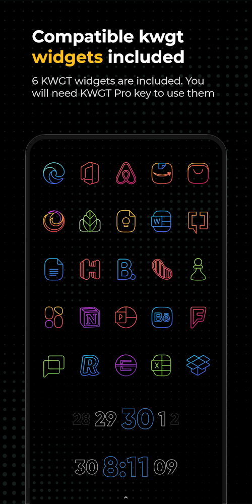 - 25 обоев и 8 виджетов KWGT: Эти ресурсы часто создаются специально для значков, предоставляемых приложением. Поэтому со временем можно найти отличное сочетание.