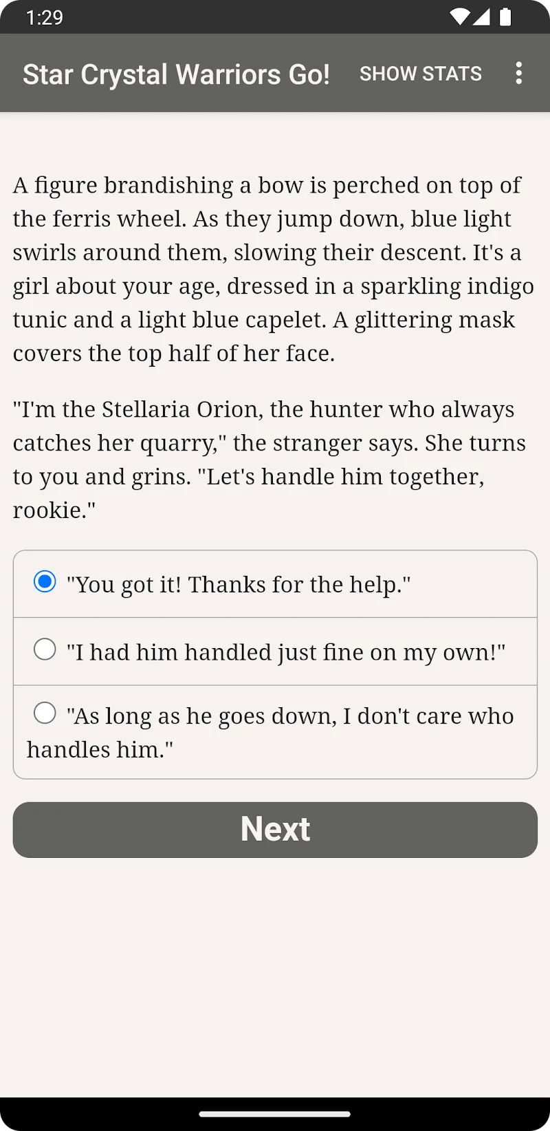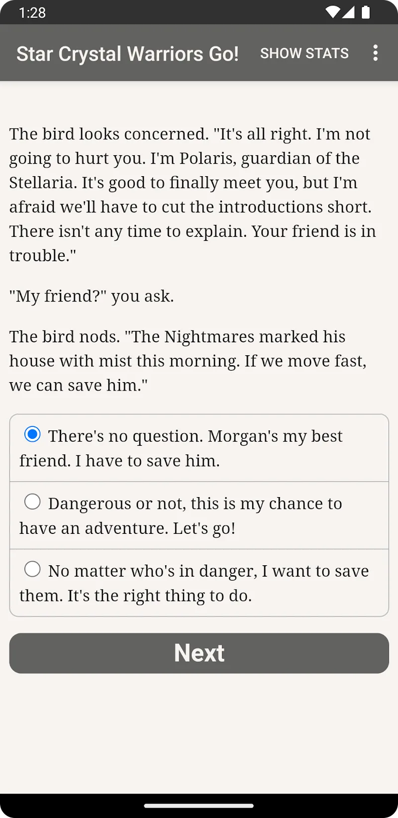 | Google Play Link | https://play.google.com/store/apps/details?id=com.choiceofgames.starcrystalwarriors |