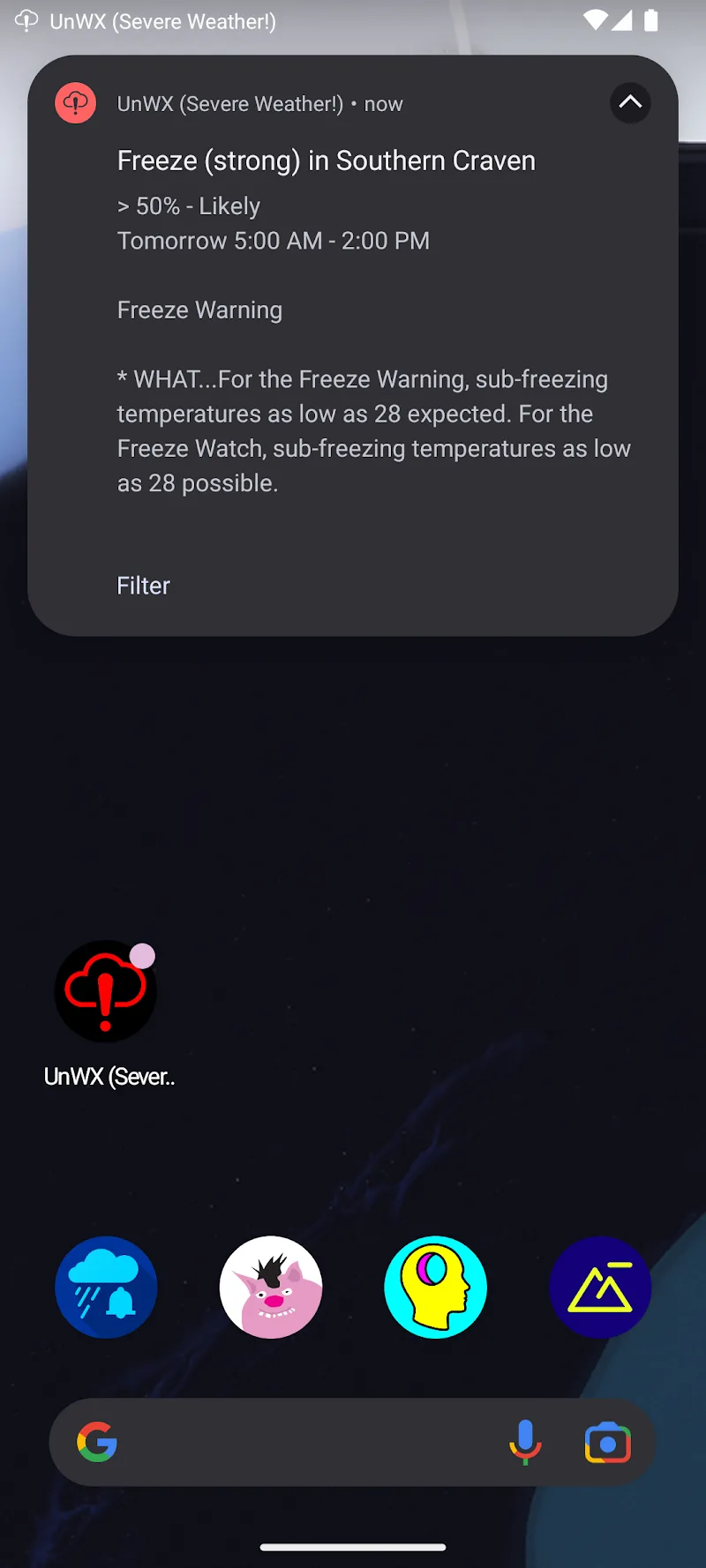 | App Name | UnWX (Severe Weather Alerts) |