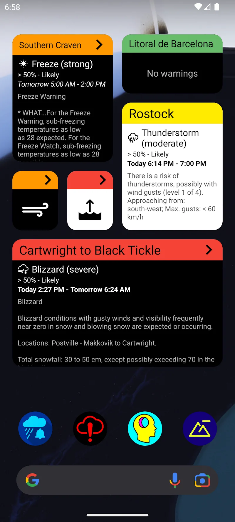 | Google Play Link | https://play.google.com/store/apps/details?id=de.mdiener.unwetter.gm |
